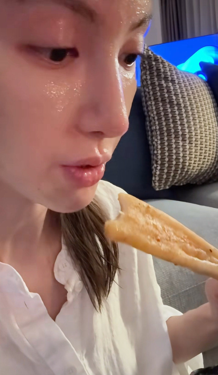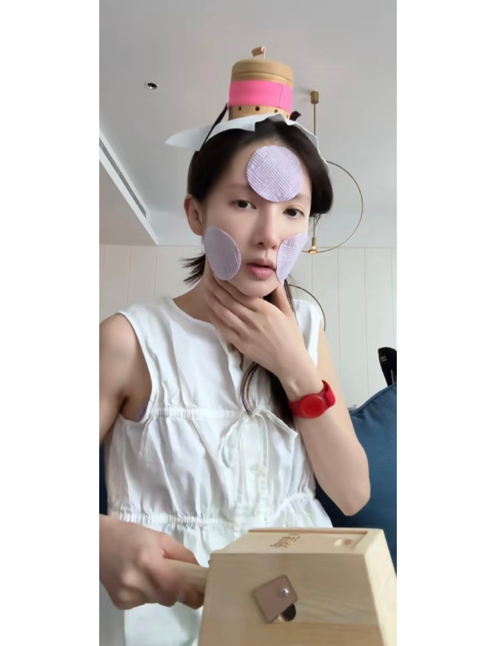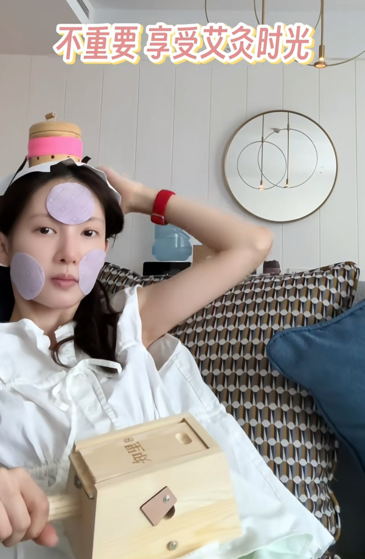 艾灸之前金晨还去洗了把脸,35岁的她皮肤特别好,嫩得像剥了壳的鸡蛋,瘦也是真的瘦,脸上几乎没什么肉。金晨突然洗脸是因为艾灸后一段时间不能碰水,看来金晨在家没少做艾灸,很懂一些注意事项。